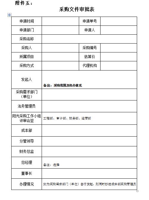 3.成本部或需求部門(單位)組建3人以上單數(shù)的采購評(píng)審小組,編制采購文件,根據(jù)需要可以發(fā)起《采購文件審批表》,向特定供應(yīng)商發(fā)出采購文件;