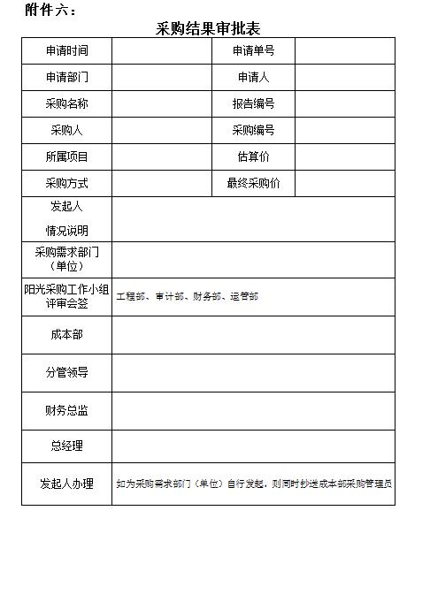 7.采購評(píng)審小組形成采購報(bào)告,由成本部或需求部門(單位)根據(jù)需要發(fā)起《采購結(jié)果審批表》,按照評(píng)審結(jié)果確定成交供應(yīng)商;