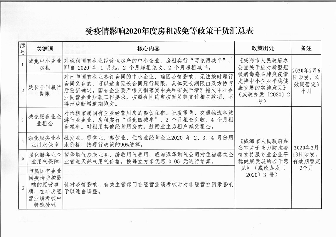 為全面落實(shí)“六穩(wěn)”、“六保”任務(wù),進(jìn)一步推動(dòng)國有企業(yè)房租減免政策落地落實(shí),現(xiàn)將《受疫情影響2020年度房租減免等政策干貨匯總表》及監(jiān)督投訴電話予以公告。