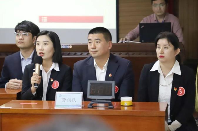 “蓬勃飛躍,勇爭第一!”“紅色物業(yè),為民服務(wù)!”“不忘初心,砥礪前行!”“開拓市場,有我最強(qiáng)!”在一聲聲洪亮的口號聲中,比賽拉開了序幕。此次黨史知識(shí)競賽內(nèi)容新穎、形式創(chuàng)新,競賽全程采取隨機(jī)抽題的方式,分別設(shè)置了必答題、搶答題、風(fēng)險(xiǎn)題三個(gè)競賽環(huán)節(jié)。在第一關(guān)的必答題環(huán)節(jié),每隊(duì)輪流派出三名選手作答,大家應(yīng)答如流、自信滿滿,黨史知識(shí)儲(chǔ)備可見一斑,比賽氛圍熱烈。