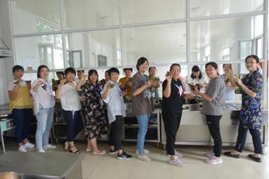 敬老的光榮傳統(tǒng),集團(tuán)女工委特意邀請(qǐng)退休職工張大姐進(jìn)行現(xiàn)場(chǎng)指導(dǎo)。配料、折葉、扎繩、蒸煮,大家分工明確、各顯其能,整個(gè)過程充滿了歡聲笑語。經(jīng)過辛勤勞作,幾百個(gè)形態(tài)各異的粽子新鮮出爐,清爽甘醇的味道飄滿了整個(gè)食堂,看著大家熱火朝天的勁頭,張大姐不時(shí)給予了贊許的目光。