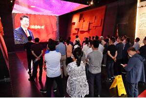 集團(tuán)黨員一起穿越了120多年的時(shí)光隧道,共同回顧了甲午戰(zhàn)爭(zhēng)以來(lái)中華民族救亡圖存的曲折歷程,深刻理解了歷史和人民為什么選擇共產(chǎn)黨、為什么選擇社會(huì)主義等重大話題,進(jìn)一步增強(qiáng)了對(duì)社會(huì)主義的理論自信、道路自信、制度自信、文化自信。面對(duì)黨旗,集團(tuán)黨委副書(shū)記孫曉東同志帶領(lǐng)全體黨員一起重溫入黨誓詞:“我志愿加入中國(guó)共產(chǎn)黨……為共產(chǎn)主義奮斗終身,隨時(shí)準(zhǔn)備為黨和人民犧牲一切,永不叛黨。”鏗鏘有力的宣誓聲久久回蕩在館內(nèi),深深感染了現(xiàn)場(chǎng)所有人……